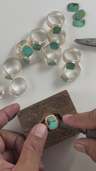 Each turquoise stone is completely unique, and striations and slight color tones may vary from what is pictured. Please see photo in products for an example, and if you’re interested in a stone with more or less striation, please leave a note at checkout or reach out to customer service before placing an order!